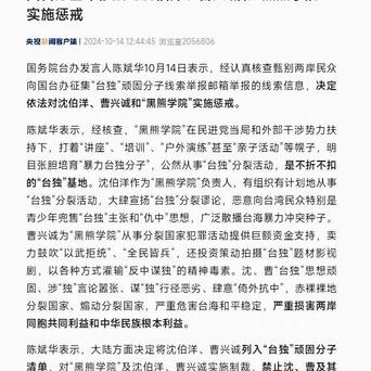 祭出组合拳:国台办宣布惩戒“台独”顽固分子沈伯洋、曹兴诚 10月14